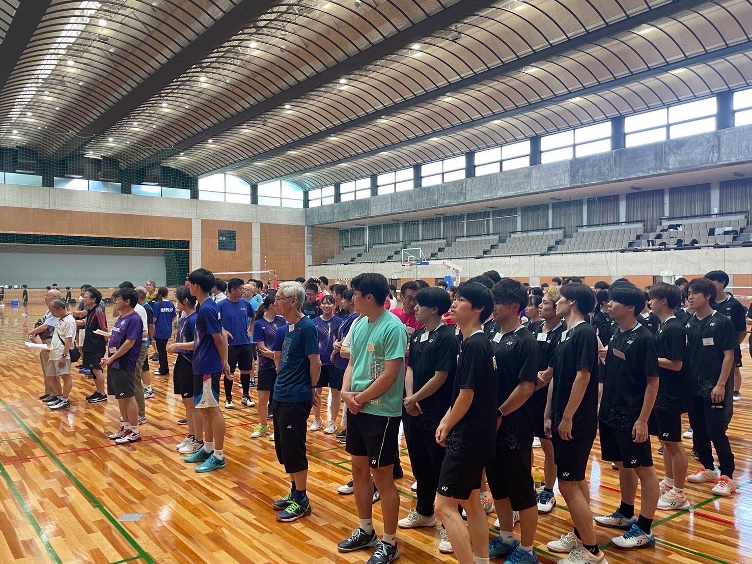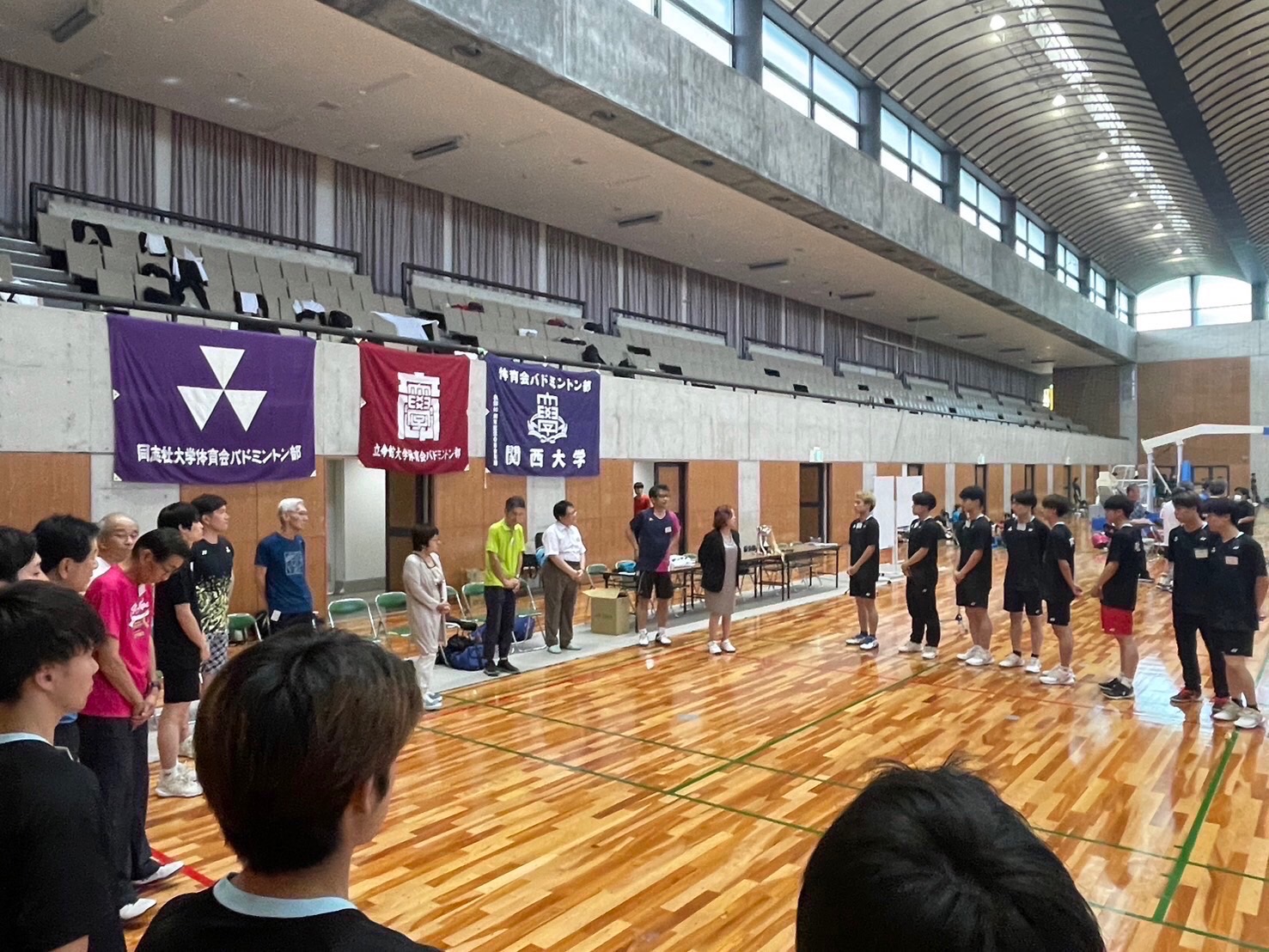 1.役員選手整列 (司会 同志社大学体育会バドミントン部OB・OG会副会長 柴田 幸典)