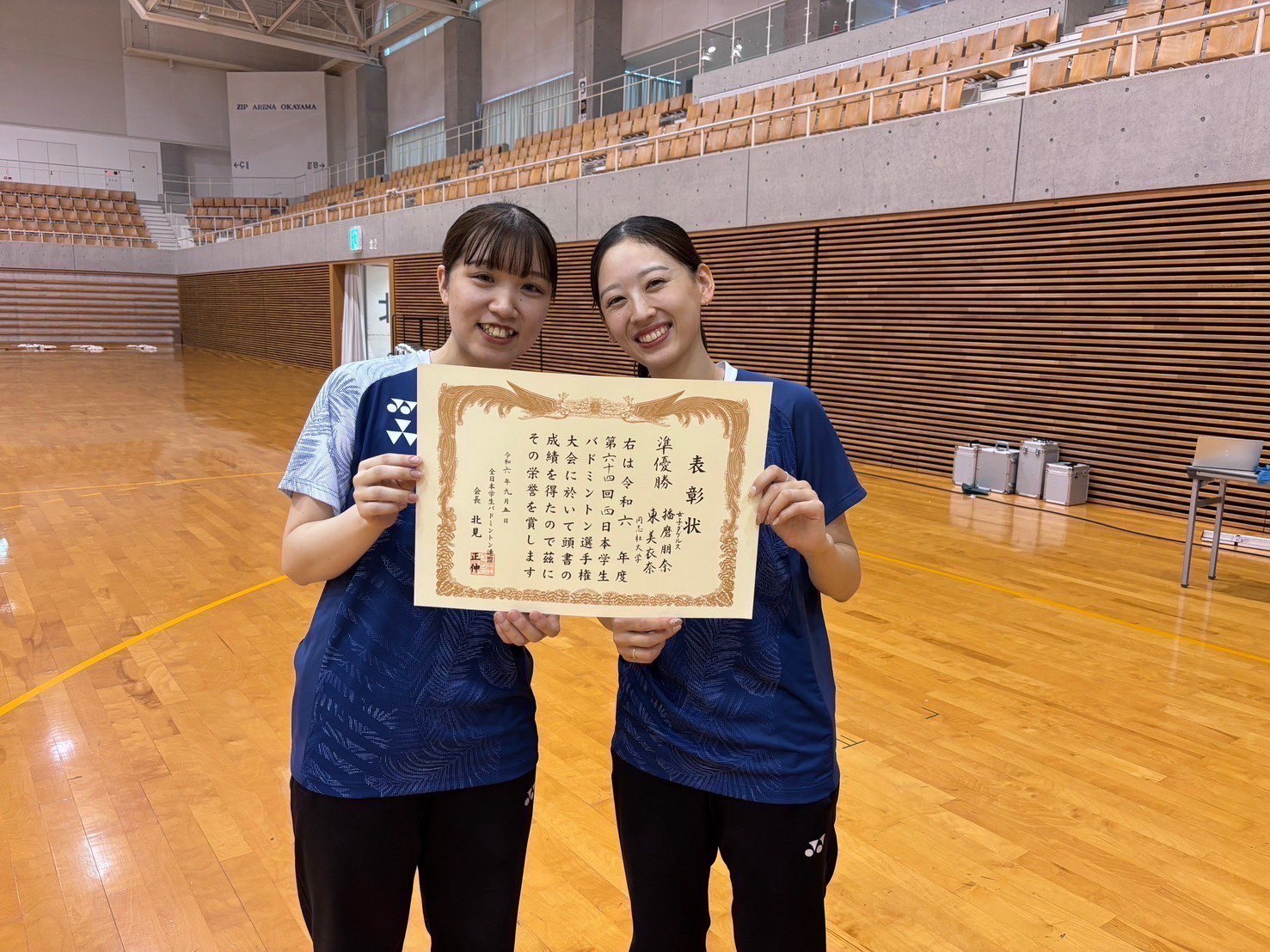 播摩(商4)・東が、準優勝に輝きました。準決勝では、団体準決勝で敗れた相手との再戦を制し、決勝は、2023年全日本インカレダブルスチャンピオンとの対戦。今春の関西選手権準決勝で快勝していますが、今大会の団体決勝では惨敗を喫した相手との再戦です。攻守にわたり決勝戦に相応しい熱戦を繰り広げましたが、19-21、19-21の僅差で敗れました。