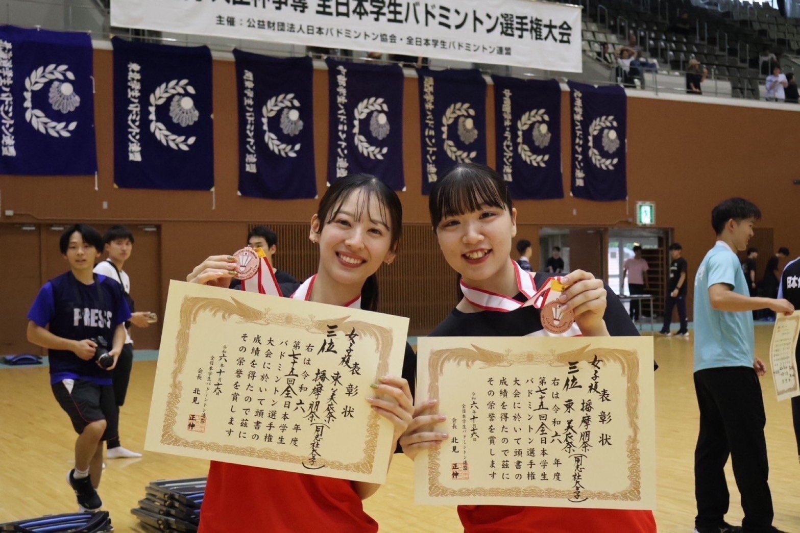 梅田(スポ健3)・田中(スポ健2)は3回戦で、太田(スポ健4)・小山(社産関4)は2回戦で敗