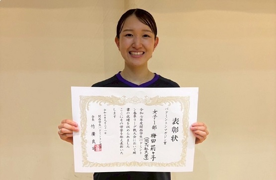 「バド・マガ賞」受賞の女子キャプテン 梅田(スポ健4)