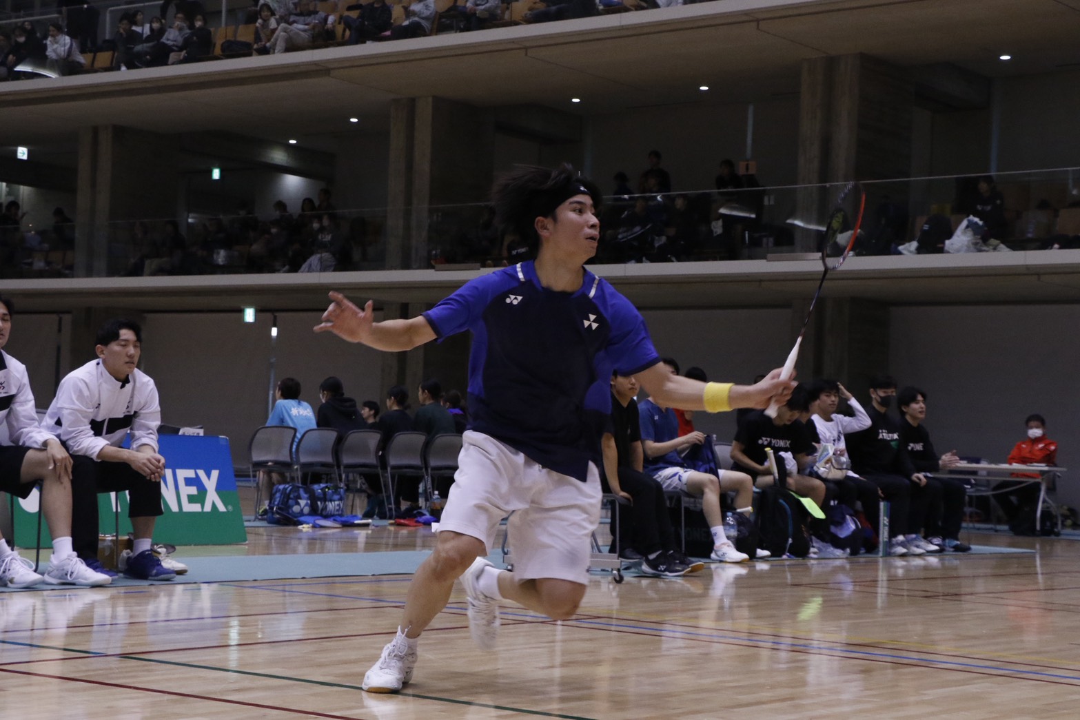 特に梅田のシングルスは、ファイナル23-25まで縺れる激戦で、何度もマッチポイントを取られながらも、気迫を前面に必死でシャトルを追いかけ、逆転してマッチポイントを握る場面もあったのですが、最後の1点が取れず惜敗となりました。東・田中(スポ健3)、向井(商1)・坪井(神1)のダブルスは、何れもよく頑張りましたが、今一つ流れに乗り切れず、内容的には不本意なものとなってしまいました。池田(スポ健1)が単1で先勝していただけに、何とか単3の尾形(スポ健3)に回したかったのですが、監督として、ベンチワークの力不足を痛感しています。