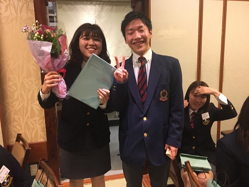 3回生 獅子堂孝雄(商)、長町夏実(商)、長丸彩由子(文情)