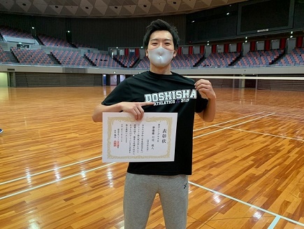 川辺(スポ健1)は浪人生活を経てブランクのある中で、男子シングルスB準優勝を果たしました。非常に素晴らしいことで嬉しく思います。力強いスマッシュに更なる磨きをかけ、来年はAでの入賞ができるよう更なる活躍を期待しています。