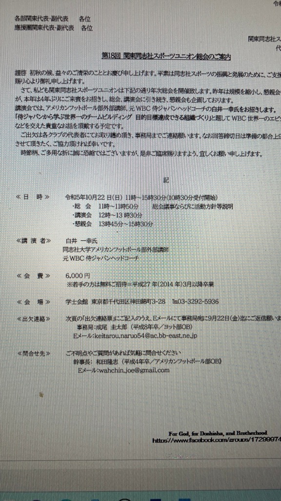 10/22 「関東同志社スポーツユニオン総会」にバドミントン部から7名出席