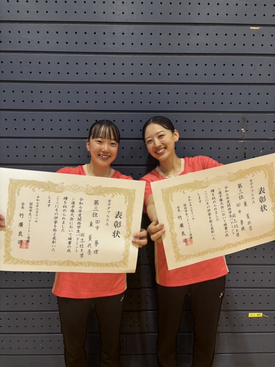 女子ダブルスA 東 美衣奈(商3)・田中夢理(スポ健3) 3位入賞