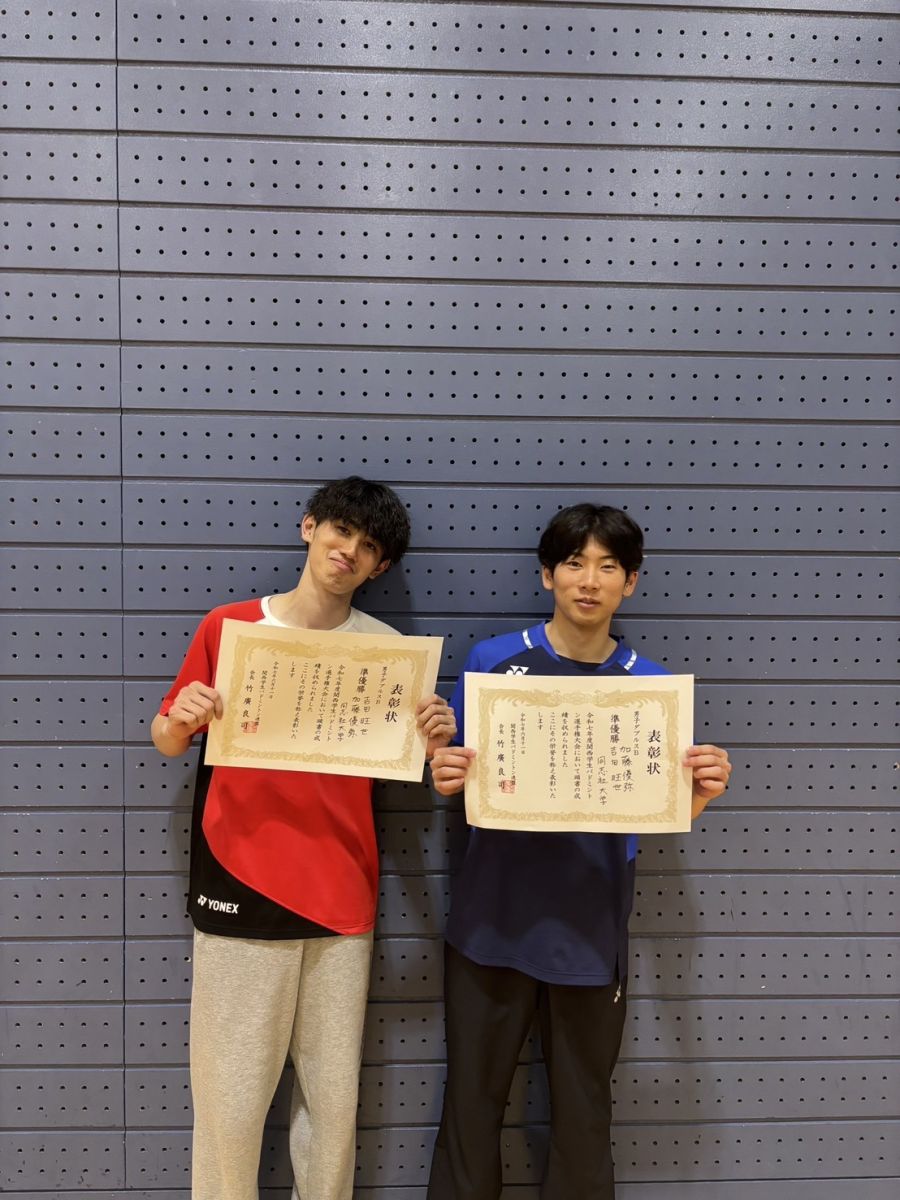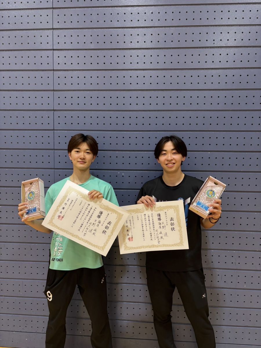 男子ダブルスB 優勝 天野遥(スポ健1)・藤原疾風(政策1)