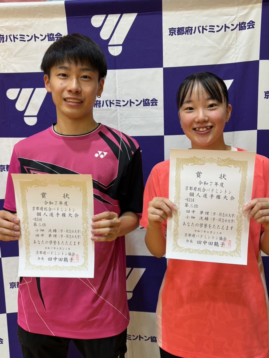 6/21 京都府総合選手権 ミックス・ダブルス 小畑(理工3)・田中(スポ健3)組 3位