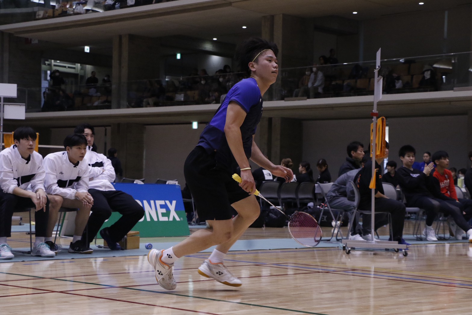 特に梅田のシングルスは、ファイナル23-25まで縺れる激戦で、何度もマッチポイントを取られながらも、気迫を前面に必死でシャトルを追いかけ、逆転してマッチポイントを握る場面もあったのですが、最後の1点が取れず惜敗となりました。東・田中(スポ健3)、向井(商1)・坪井(神1)のダブルスは、何れもよく頑張りましたが、今一つ流れに乗り切れず、内容的には不本意なものとなってしまいました。池田(スポ健1)が単1で先勝していただけに、何とか単3の尾形(スポ健3)に回したかったのですが、監督として、ベンチワークの力不足を痛感しています。