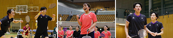 同志社大学体育会バドミントン部では、部員・マネージャーの入部を歓迎します。 経験の有無は問いません、出身地や学部、バドミントンの経歴(競技レベル)も 異なる仲間と共に、チームの目標と個人の目標達成に向けて汗を流す時間は、 貴重な経験として、かけがえのない財産と成る筈です。